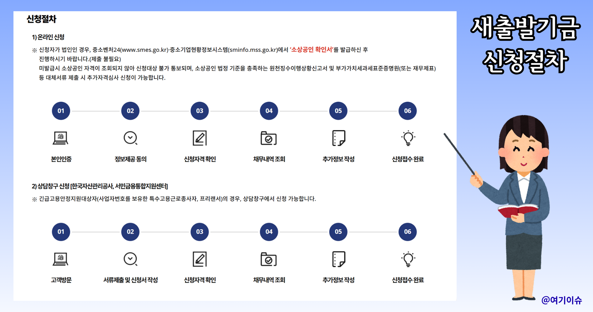 | 필요 서류 | 신분증, 사업자등록증명(휴폐업증명), 소득증빙서류 등 (온라인 시 자동 연동 가능) |