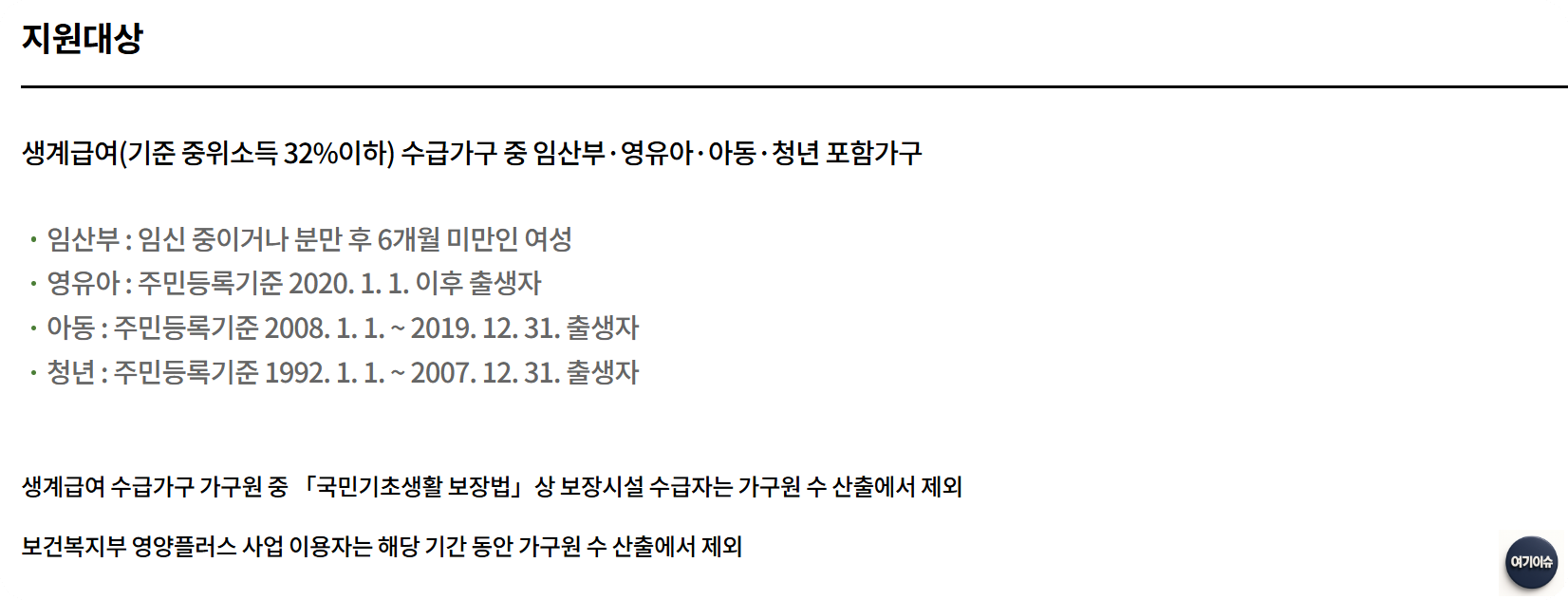 👉 임산부, 영유아, 아동, 청년이 포함된 가구