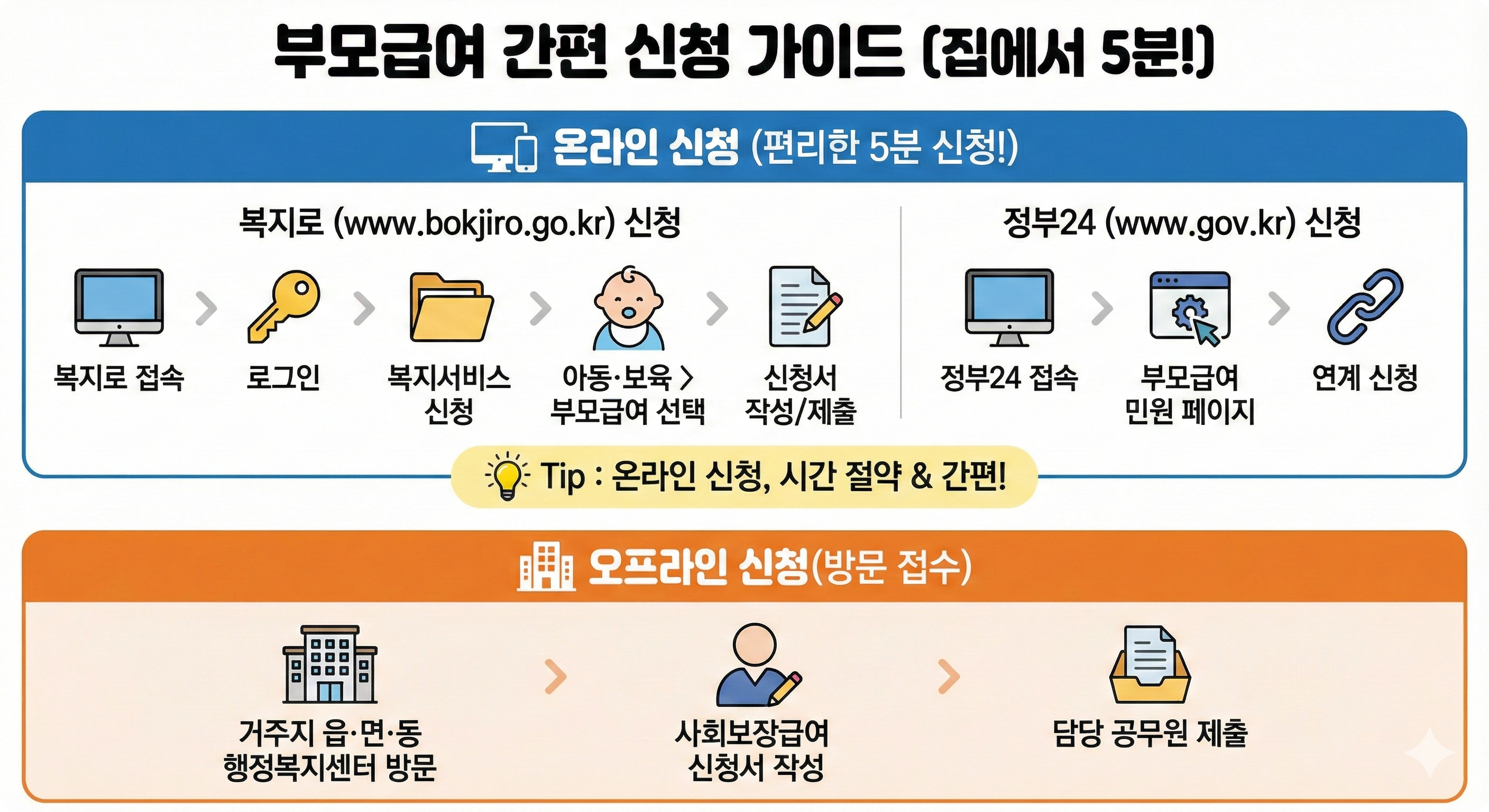 💡 Tip: 온라인 신청이 시간도 절약되고 편리해요. 집에서 5분이면 끝납니다!